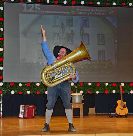 Der Abend hat einen spannenden Rückblick auf die Geschichte der Feuerwehr Buchenbach sowie ein abwechslungsreiches Programm, unter anderem mit dem Kabarettisten Fidelius Waldvogel, geboten. Vor und nach dem Programm sorgte das Duo `Die Höllentäler` mit Ihrem Motto urig, fetzig, live für beste Stimmung.